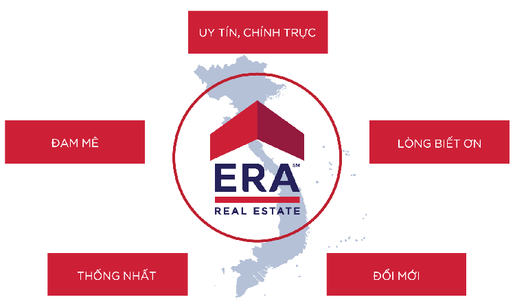 Tại ERA, chúng tôi cam kết đem lại dịch vụ tốt nhất, kết quả tốt nhất, và hướng đến sự hài lòng cao nhất từ khách hàng. Nhân viên ERA sẽ có được sự hỗ trợ từ những công cụ bán hàng luôn được cập nhật mới nhất và kiến thức đào tạo chuyên sâu để có thể hoàn thành tốt công việc. Khách hàng sẽ hoàn toàn tự tin khi làm việc với những nhân viên ERA, những người luôn đặt tâm trong việc phục vụ khách hàng tốt nhất với thái độ chính trực nhất.