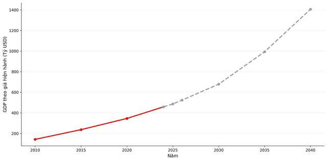 此外,到 2035 年,这一数字可能达到 9,149 美元,到 2040 年将达到 12,559 美元。不仅数量会增加,越南的排名也会提升:从目前的约 123 - 124 位跃升至 2030 年的前 120 名,2035 年的前 112 名,以及 2040 年的前 107 名