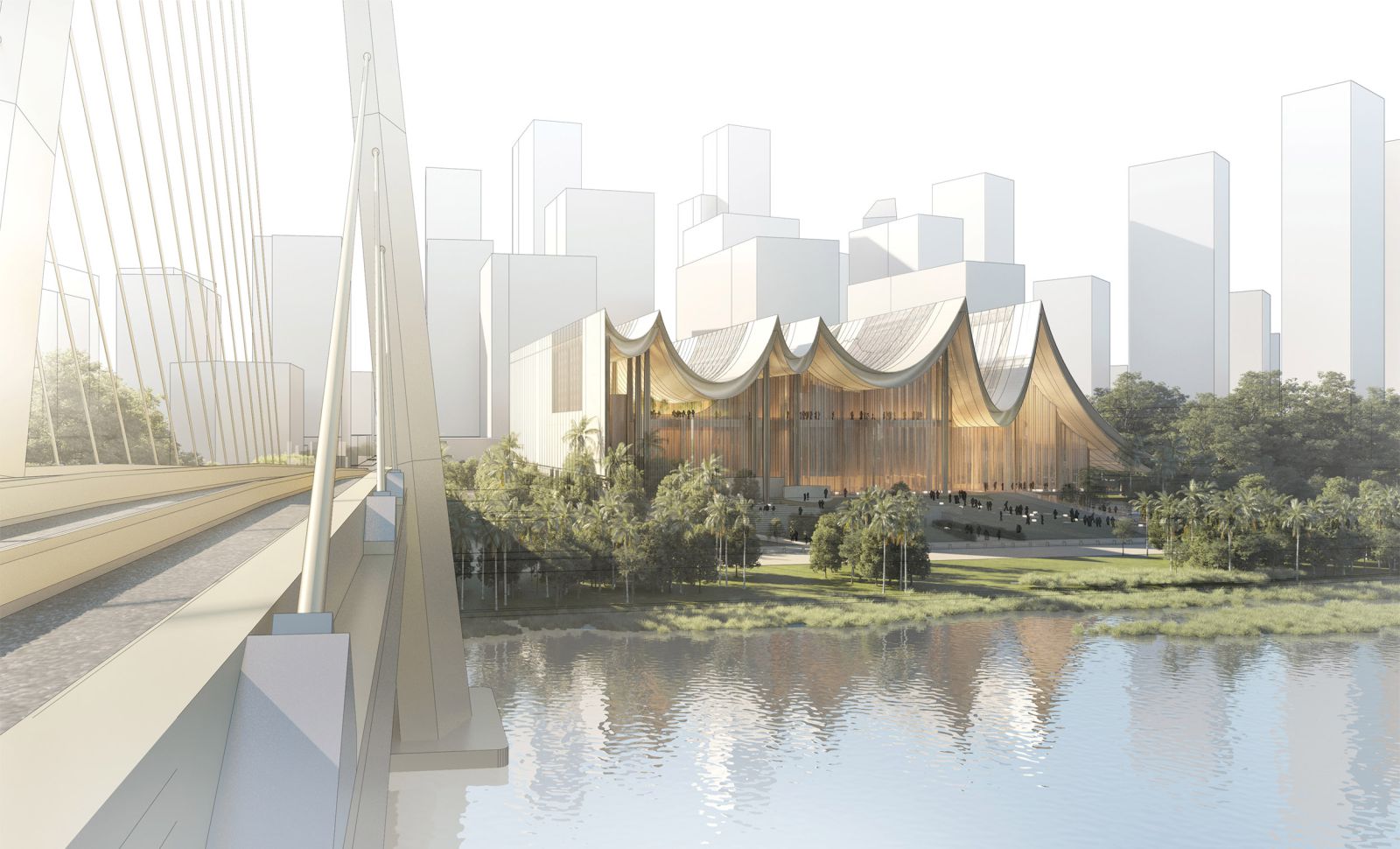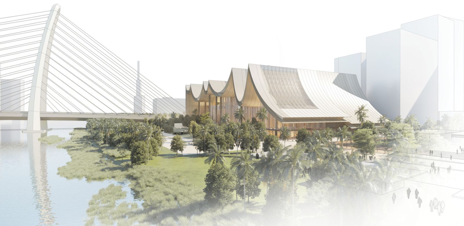 Một phối cảnh nhà hát đặt gần cầu Ba Son trước đây. Ảnh: Sở Quy hoạch - Kiến trúc TPHCM