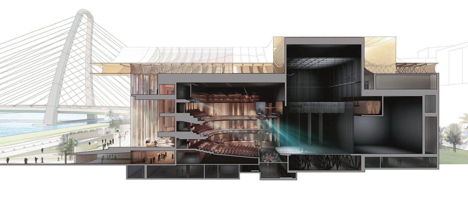 Phối cảnh mặt cắt nhà hát. Nguồn ảnh: https://www.studiomilou.sg/
